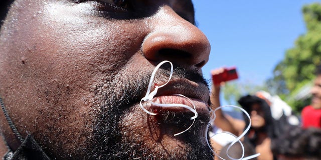 Migrants on Mexico’s southern border sew mouths shut as they demand passage to US